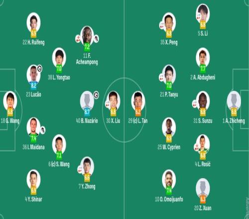 后卫:4-罗西奇(F)(75'6-张华晨)、31-苏祖(F)(68'17-贺一然)、2-阿不都海米提-阿不都格尼