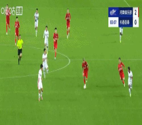 第54分钟,迈达纳斜传,纳萨里奥潇洒停球后踢出一脚精彩的撩射破门,河南1-0领先亚泰。