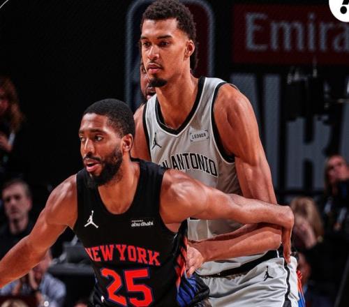 后半段布伦森和唐斯轮流单打,双方又回到同一起跑线,节末福克斯高难度漂移跳投,半场马刺61-59尼克斯,阿努诺比半场独砍20分!下半场福克斯连中三分,阿努诺比继续造杀伤,文班亚马不在期间,尼克斯不断缩小分差。中段文班亚马接到瓦塞尔传球空接背扣,哈珀强攻拉开10分分差。后半段文班也找到外线手感,随后空中点进篮筐继续上分,紧跟着又是一记三分球,但克拉克森联合科洛克下三分雨,三节打完,马刺94-89尼克斯。第四节风云突变,米罗暴扣+克拉克森下三分雨,阿努诺比依旧弹无虚发,尼克斯打出15-3的高潮。